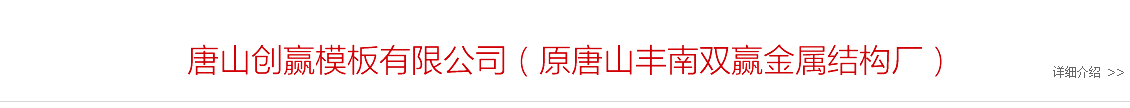唐山創(chuàng)贏模板有限公司(原唐山豐南雙贏金屬結構廠)始建于一九九七年,是具規(guī)模實力的組合模板生產企業(yè)。公司技術力量雄厚,質量管理體系完善,與中鐵,中建,中交,中電,中水,中石油,中石化,河南水利工程局等大型施工企業(yè)有長期合作關系,產品覆蓋各省市自治區并出口新加坡,馬來西亞,委內瑞拉,印度,保加利亞等國,深受國內外客戶的一致好評。